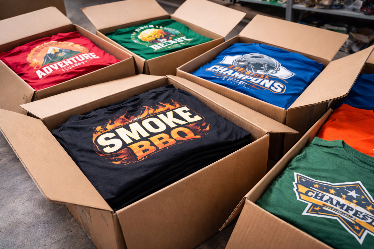 High-quality screen printed apparel including T-shirts, hoodies, and more, finished with bold colors and long-lasting prints.