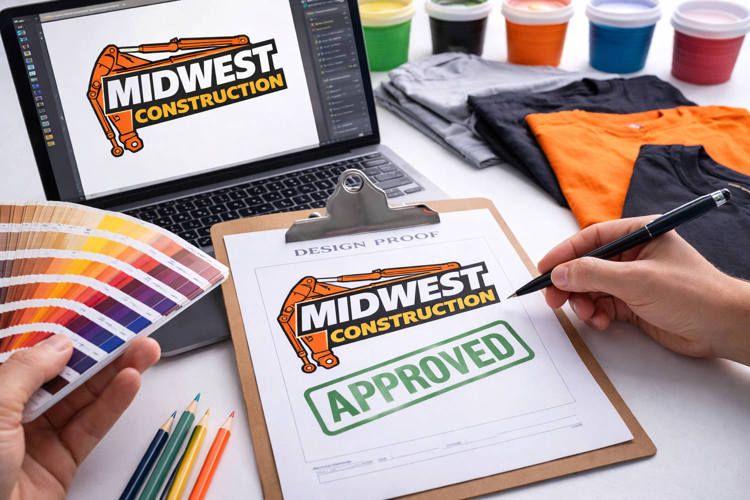 Choose your apparel, submit your design, and approve the final proof so everything is dialed in before printing begins.